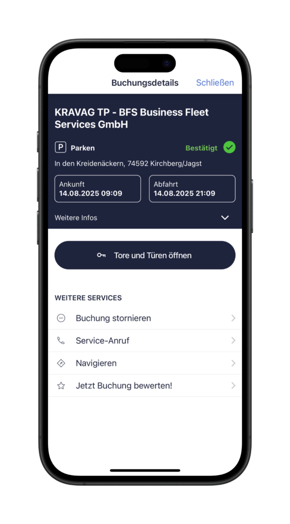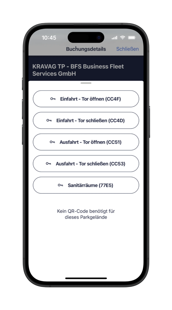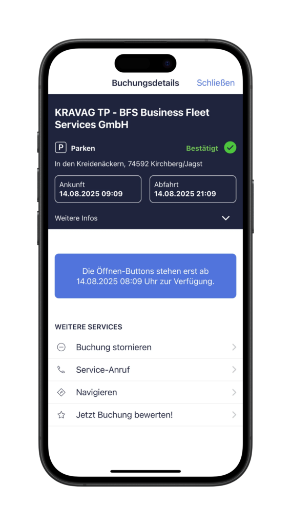 2. Beachten Sie: Der Button zum Öffnen ist erst eine Stunde vor Beginn der Parkzeit sichtbar.
